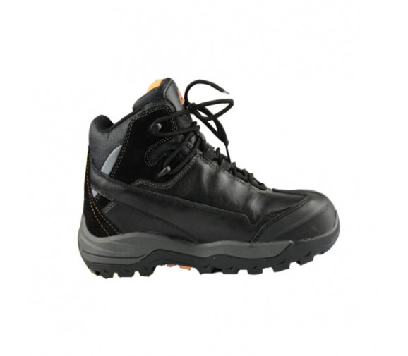 頭層牛皮鞋面,柔軟舒適,聚酰胺吸濕襯里,可脫卸預(yù)成型聚酯纖維EVA鞋墊,粘合PU中底帶Panoshock減震材料;橡膠大底,非金屬合成材料保護(hù)包頭和防刺穿中底,保護(hù)足趾、防刺穿、防靜電、后跟減震、耐磨、耐油、耐酸堿、SRC級防滑;耐250℃高溫、耐寒